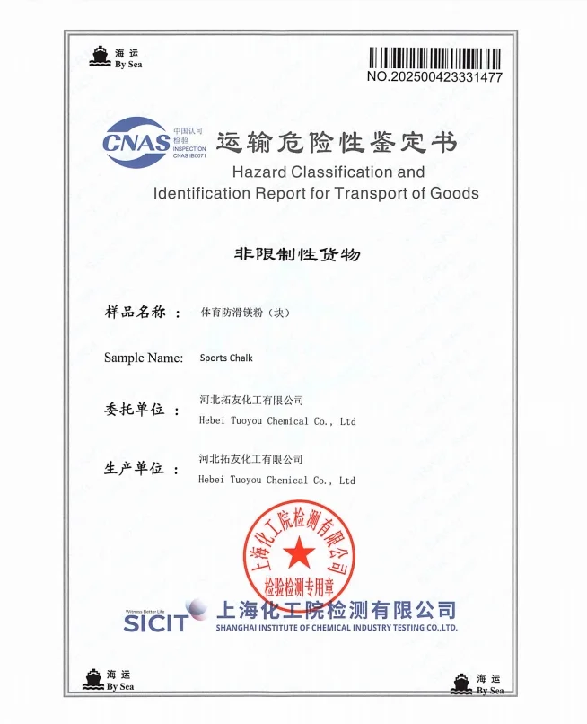 Hebei Tuoyou Sports Goods Co., Ltd . was established 2014 is a professional production of all types of Gym Chalk (chalk block , liquid chalk chunky chalk,chalk ball and fine chalk powder), Sports Tape and Climbing accessories . We are location at Gaoyi town , Shijiazhuang City , Hebei Province China. Our factory covers an area of 5000 square meters workshop and warehouse . There are four production lines and more than 40 workers . Professional production equipment control by the professional technical personnel and professional inspection personnel, to ensure the quality of products. We can custom the brands and package , the MOQ is lower .